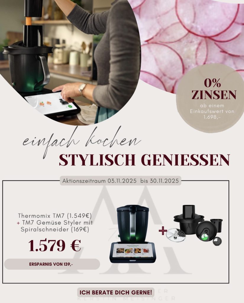 Gerne unterstütze ich bei den kulinarischen Abenteuern mit dem Thermomix. Kontaktiere mich gerne für weitere Informationen oder um einen Termin zu vereinbaren!